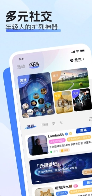 用户们也可以通过兴趣社区交友,结识有着相同兴趣爱好的朋友,例如游戏爱好,运动爱好等