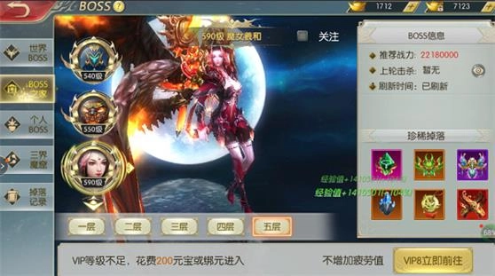 嫌弃世界BOSS疲劳度限制?那么BOSS之家就很推荐哦,但是BOSS之家需要VIP4才能进入哦。相比起世界BOSS,BOSS之家的掉落也是很丰富的,高阶装备快来我怀里~