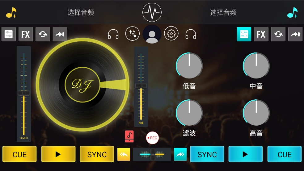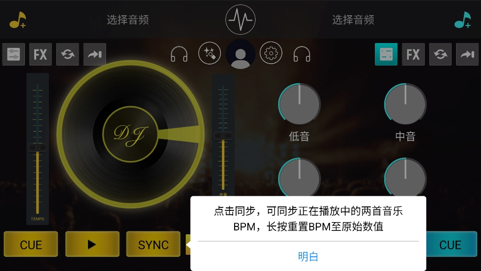 经典的DJ双黑胶盘操作界面,不仅支持滑动打碟,还具备变速调节、节拍同步以及自定义CUE点等一系列专业接歌混音技术。