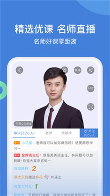 3.精选课程,著名老师现场直播,距著名老师零距离。