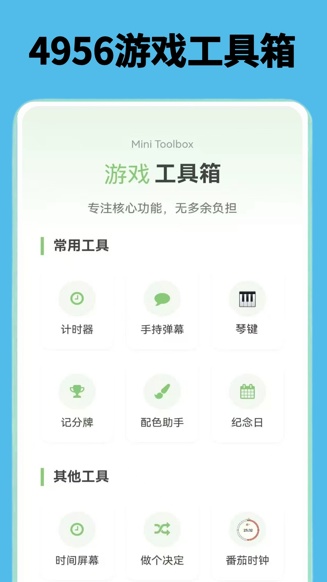 4956游戏盒是一款极为简单好玩的娱乐盒子类软件,拥有海量精心挑选的游戏资源以及各式各样丰富的游戏辅助工具,既能满足大家在游戏娱乐方面的需求,也能满足日常工具使用需求。它不但提供多样化的游戏玩法,还配备了数十种实用小工具,而且还支持桌面小组件功能,真正做到了娱乐性与实用性兼顾。