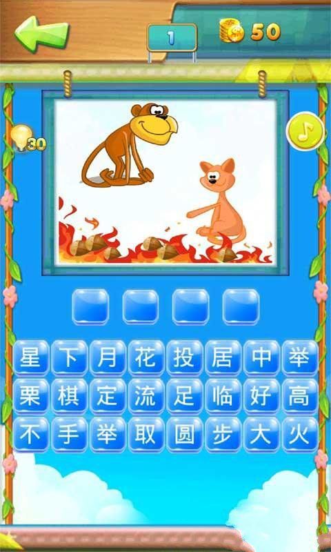 3.关卡当中猜成语时设计了非常有趣的图片显示,将成语暗藏在每一个图片当中。