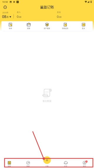 1、打开鲨鱼记账应用,点击底部按钮,进入收支记录页面,准备记录消费。
