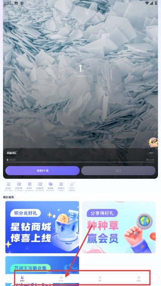 1、在应用首页,点击底部指定区域进入对应板块,可参与积分兑好礼等活动。
