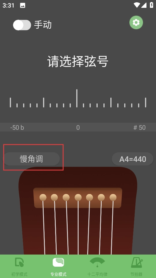 1、在专业模式页,点击正调宫三进入调式选择。