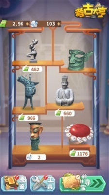 3.玩家收藏的文物会摆放在文物架上,可以点击图鉴查看文物的历史背景。