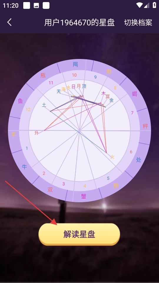 3、保存后,点击解读星盘,查看星盘解读。