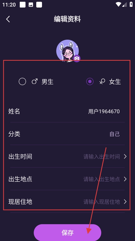 2、在星盘相关页面编辑资料后,点击保存。