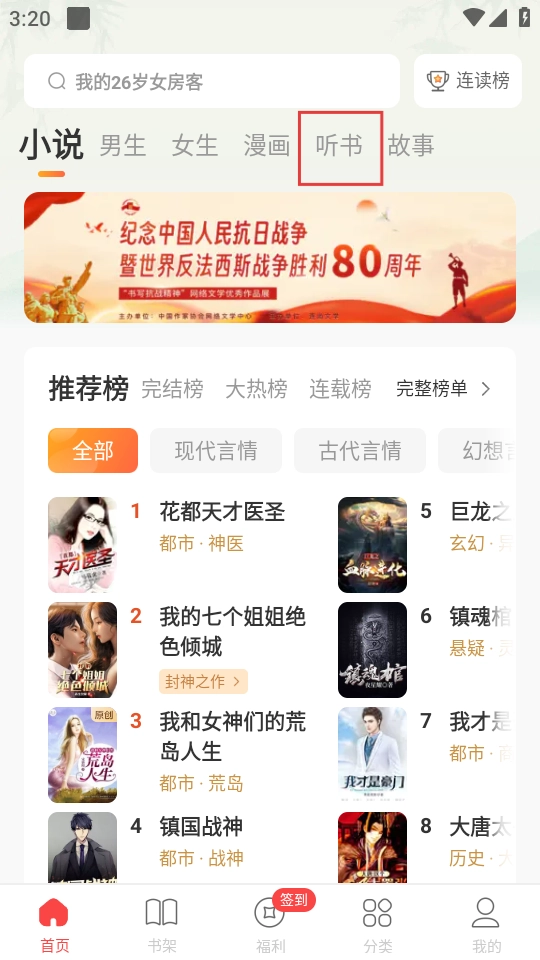 1、查找目标小说:打开软件后,可在首页浏览热门推荐小说,或进入分类板块按题材筛选,也可在搜索栏输入小说名称、作者名,快速定位想要阅读的作品。