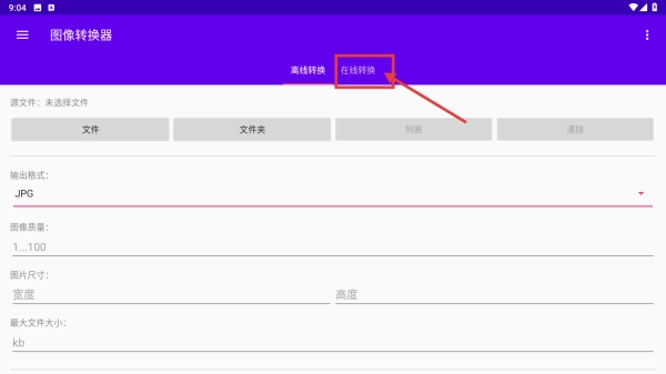 1、打开图像转换器应用,点击在线转换选项,进入在线转换页面。