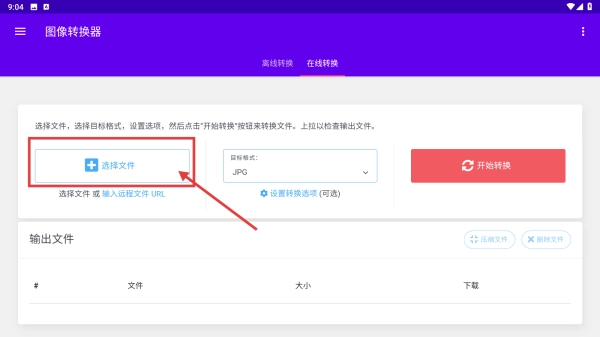 2、在在线转换页面,点击选择文件按钮,进入文件选择界面。