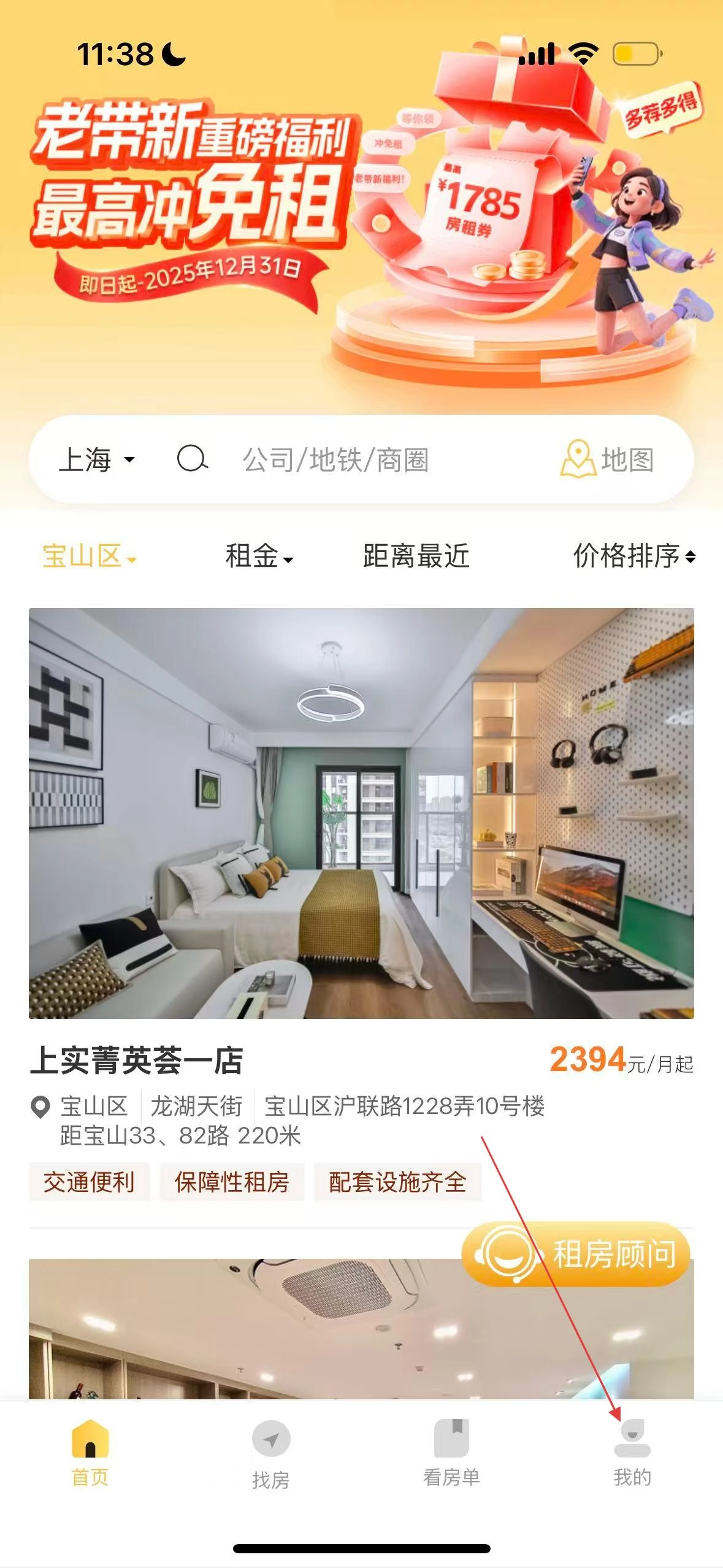 1、进入租房软件首页,点击右下角我的。