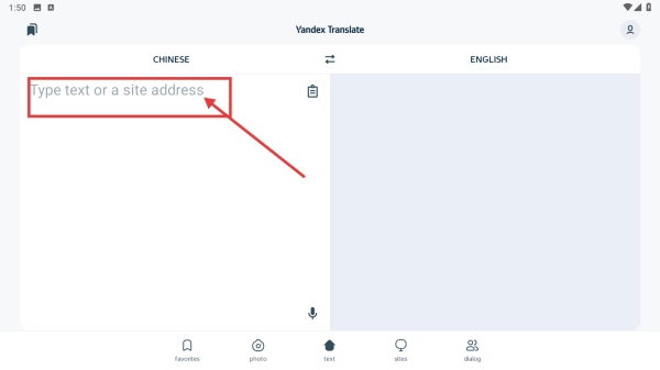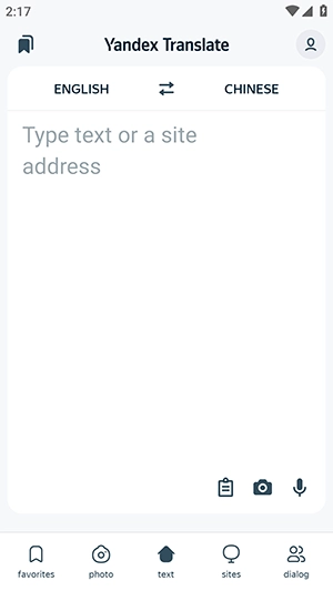 1、打开Yandex-Translate应用,点击底部text选项,进入文本翻译界面。