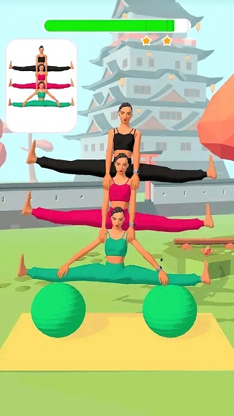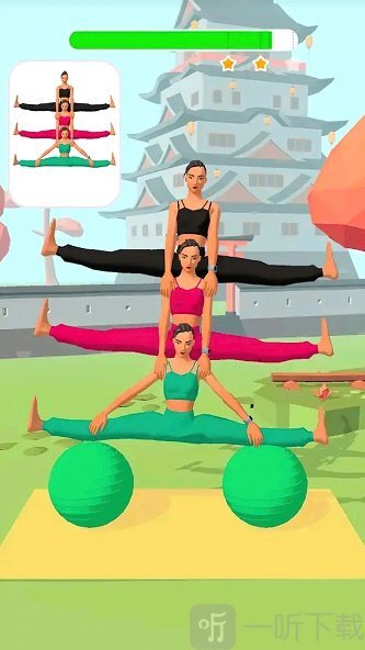 游戏的背景音乐轻松欢快,在迎接游戏挑战时,关键在于把握节奏,同时操控角色做出各类优美且高难度的瑜伽动作。这款游戏操作简单,容易上手,还设置了大量关卡供玩家挑战。虽说操作看似简单,但实际上还是存在一定难度的,最终能否顺利完成任务,就得看个人表现了。