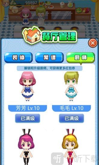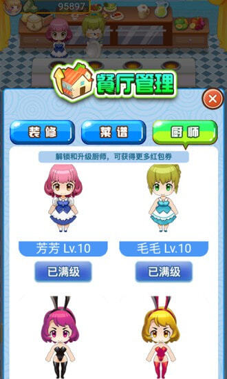 1. 餐厅规模需要玩家持续升级,通过在这赚取金币即可实现升级。