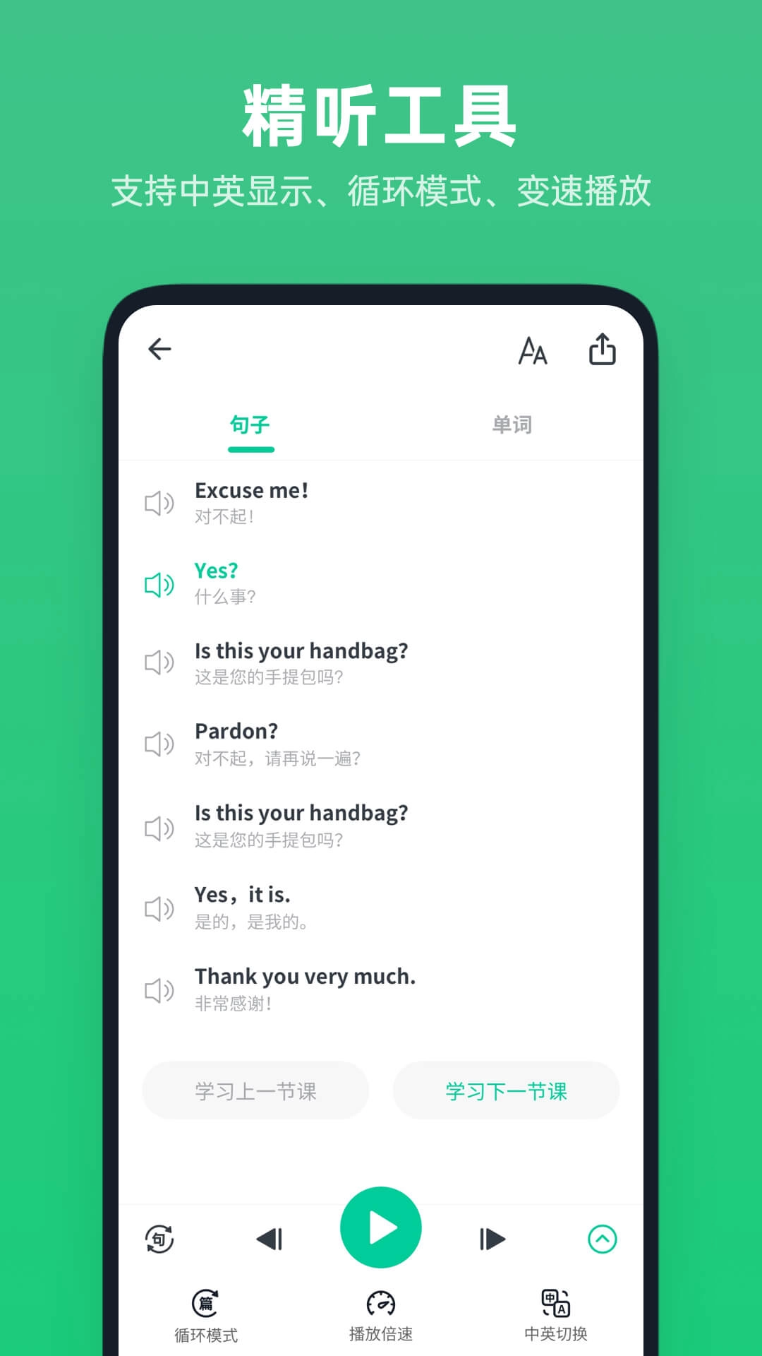 4. 听力训练:为用户提供各类丰富的英语听力素材,像新闻、电影片段以及歌曲等。同时,具备变速播放功能,能够充分满足不同英语水平用户的需求。
