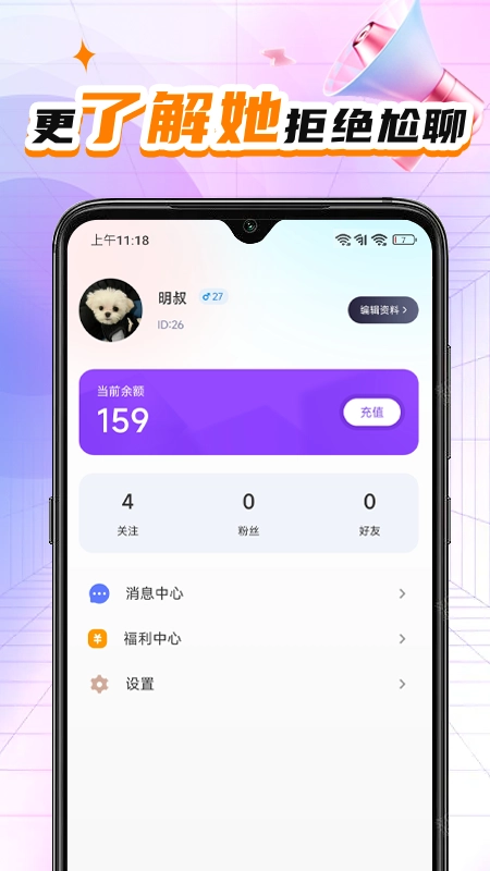 2、在开启聊天前,你可以查看对方的个人信息,判断其是否符合你的心意。毕竟,只有三观相符,彼此的交流才能更深入。