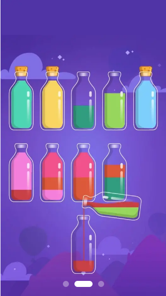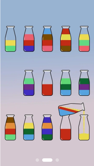 颜色拼接是一款极为经典的水排序休闲娱乐游戏。在该游戏里,玩家要操控各类颜色的玻璃瓶,只要设法把相同颜色汇聚到一个瓶中,就算挑战成功。此游戏颇考验玩家的颜色感知能力,而且关卡十分丰富,充满挑战性。