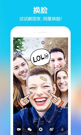 脸部自动识别,轻松拍摄激萌或恶搞的视频或图片,告别单调,让拍照更有趣,从此爱上自拍!