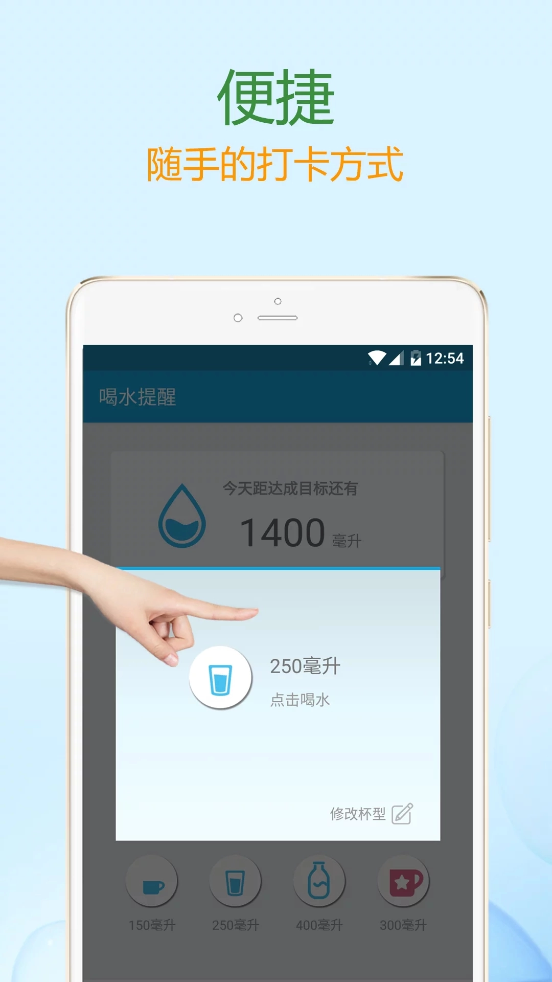 2. 记录饮水情况,软件会自动记录您的饮水情况。
