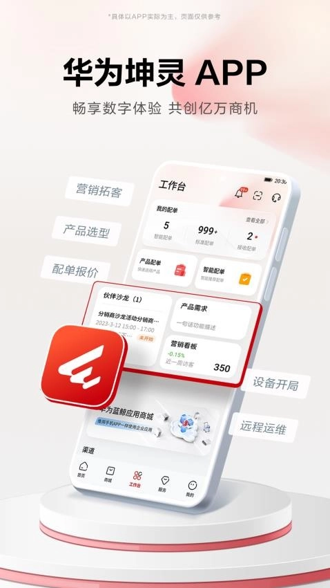 华为坤灵是华为公司专为坤灵分销业务打造的一款移动应用软件。此软件的主要作用是助力用户更出色地管理库存、制定销售计划、跟踪订单,并优化业务流程等。