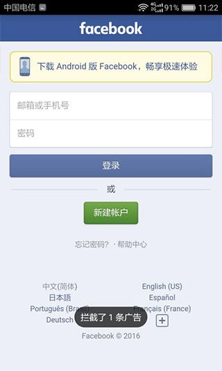 8、浏览器还支持邮箱、手机号和facebook号登录,以上就是x浏览器手机版的使用方法了。