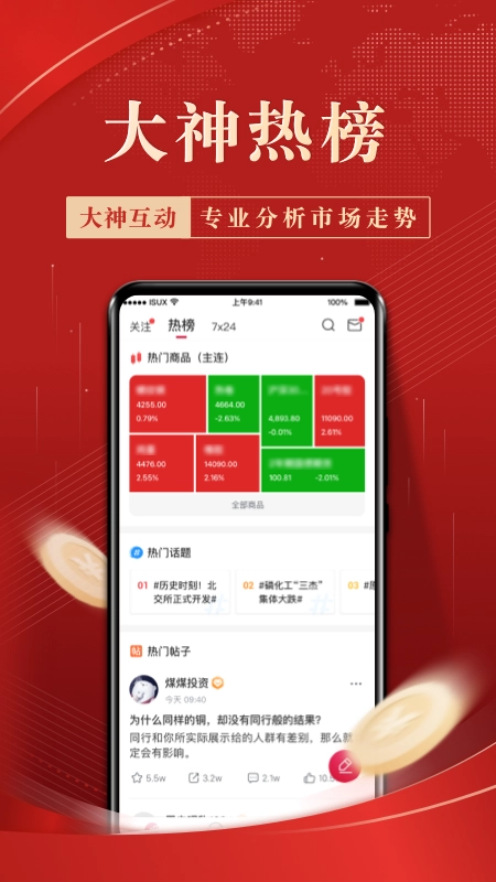 3、热门话题、大神互动,分享投资观点、实操经验