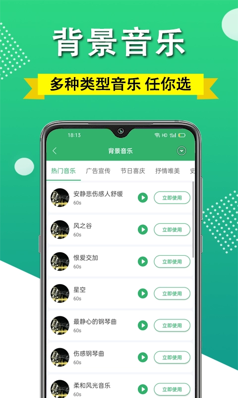 用户还能获取平台精心准备的各类背景音乐,可从中挑选符合自身需求的音乐素材。