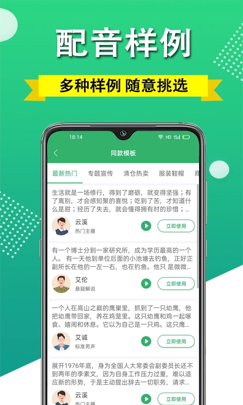 会为你提供热门主播的语音,你也可以试听不同主播的语音效果;