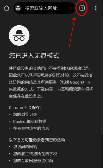 3、在无痕模式下,点击右上角的图标