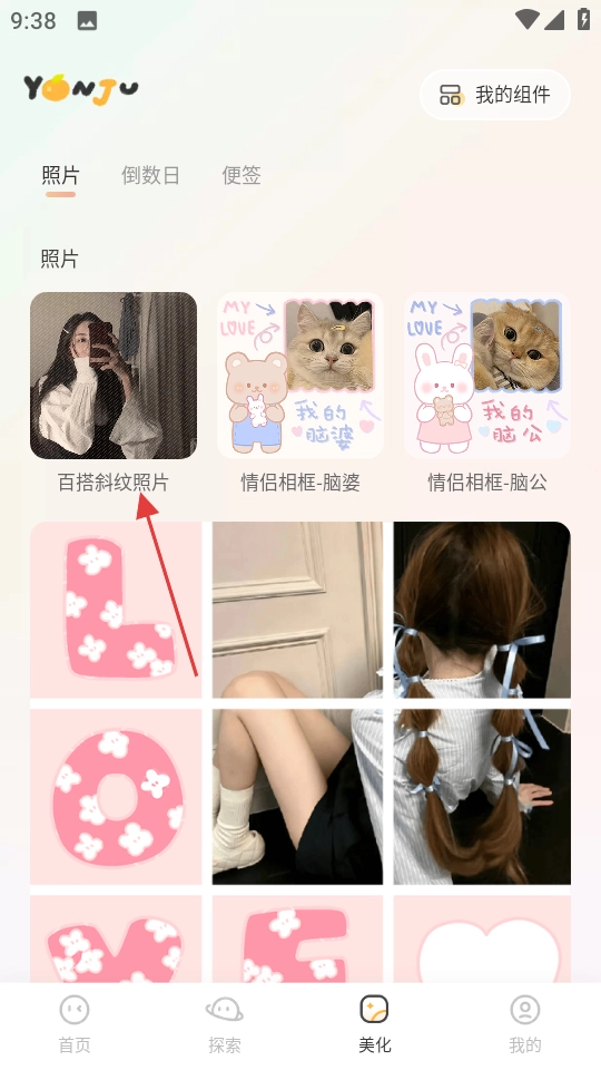 2、在美化页面的分类里,选择喜欢的模板,比如百搭斜纹照片点击进入。