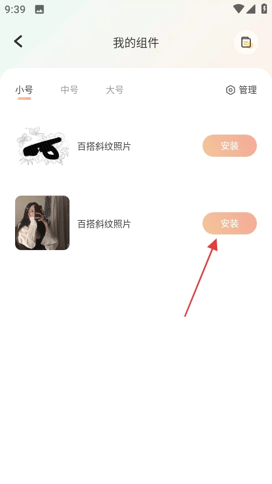 4、跳转到我的组件页面,找到添加的照片组件,点击右侧安装按钮进行安装。