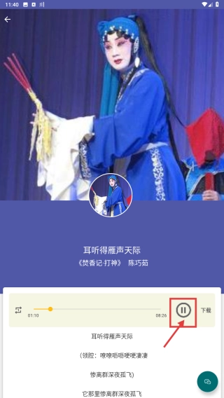 3、在陈巧茹个人详情页,找到耳听得雁声天际选段,点击进入播放页面。