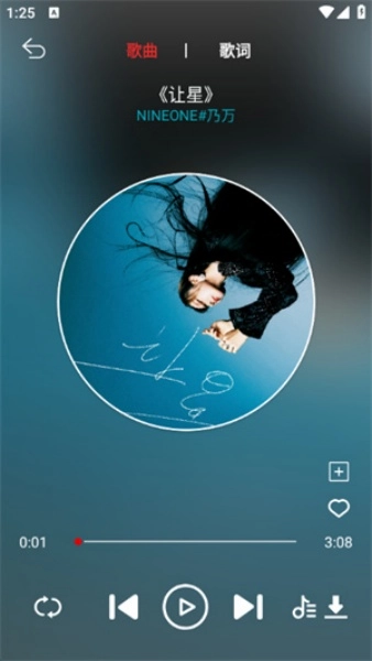 3、在播放界面中你可以查看歌词,也可以收藏或音乐。