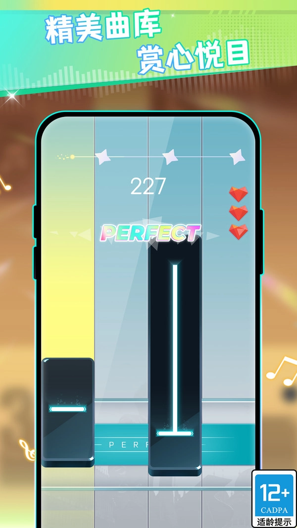2.解锁高阶曲目:通过完成任务和挑战积累经验,逐步解锁更高难度的曲目与关卡,锻炼音乐感知和反应速度,提升个人水平。