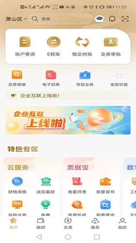 企业互联,是浙江农村商业联合银行股份有限公司精心研发的手机企业银行软件,专为浙江小微企业用户量身打造,旨在提供更为专业的金融服务。在企业互联平台,账户管理、转账汇款等各类银行服务一应俱全,用户在手机上即可轻松完成各项业务,无需在线下排队,大大简化了繁琐流程,有效提升广大企业管理者的业务办理效率,帮助他们节省时间。