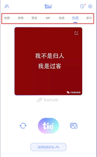 3、来到首页,可挑选壁纸、GIF、表情包、美句等。接着选择“贴给TA”或者“贴给自己”,就能进行发送。全部内容会即时显示在桌面,营造专属的互动空间。
