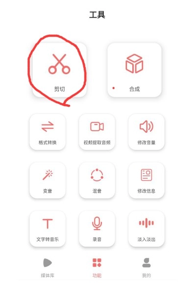 1、点击“功能”页面中的“剪切”选项,进入剪切器界面。