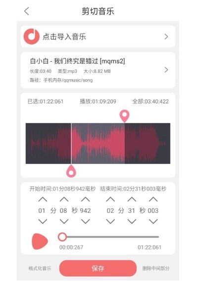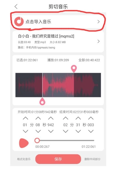 4、要是在剪切过程中出现闪退或者失败的状况,不妨先点击“格式化音乐”按钮,随后再次进行剪切操作。