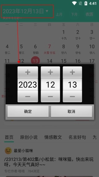 1、进入天天日历,点击上方就可以任意选择日期进行查询。