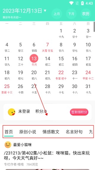 2、下方还有首页、原创小说、情感散文等板块。