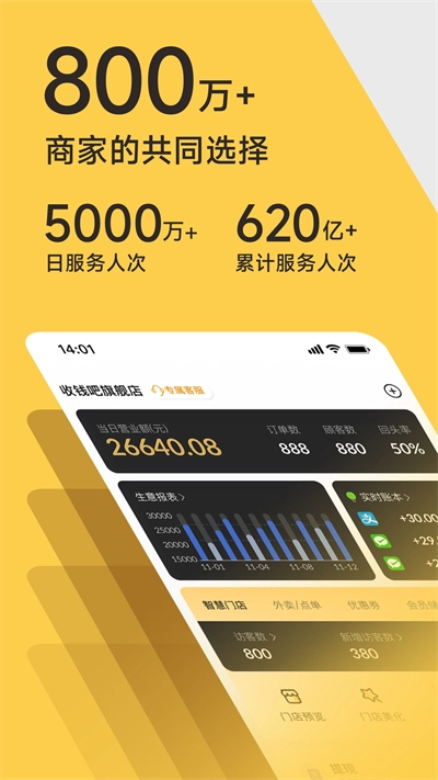 - 线上门店全新操控界面,更多经营工具助您提升获客及收款成功率。