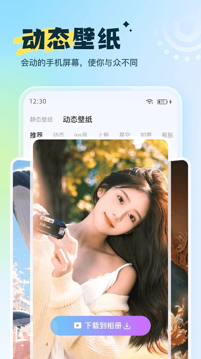 2、配套超清壁纸库,涵盖动态萌宠、创意插画、风景写真等高品质图像。