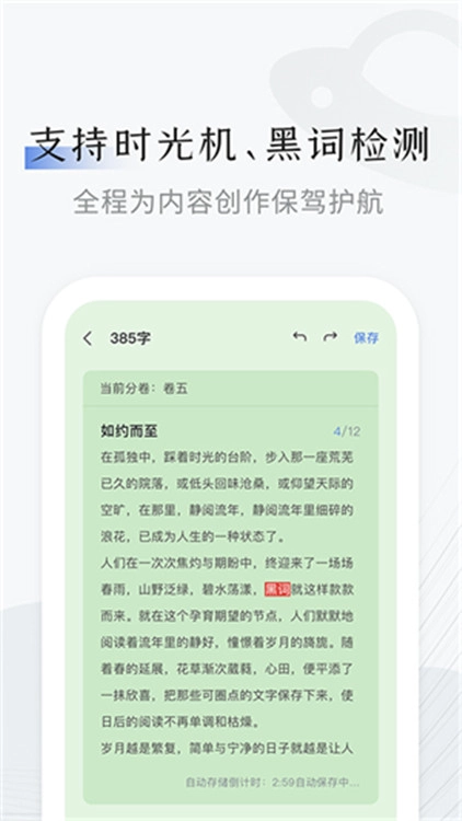 3、具备时光机、敏感词检测等功能,让您在创作过程中无需担忧。