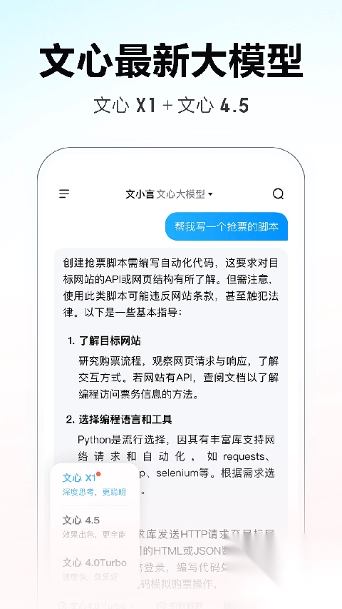 - 多模型融合调度,文心 X1 / 4.5 / 4.0 Turbo、DeepSeek 放心免费用