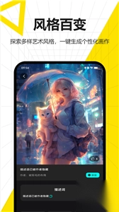3、依托强大的AI智能技术,能够迅速把您输入的描述文字转化为梵高、莫奈、毕加索等大师风格的手绘艺术品。