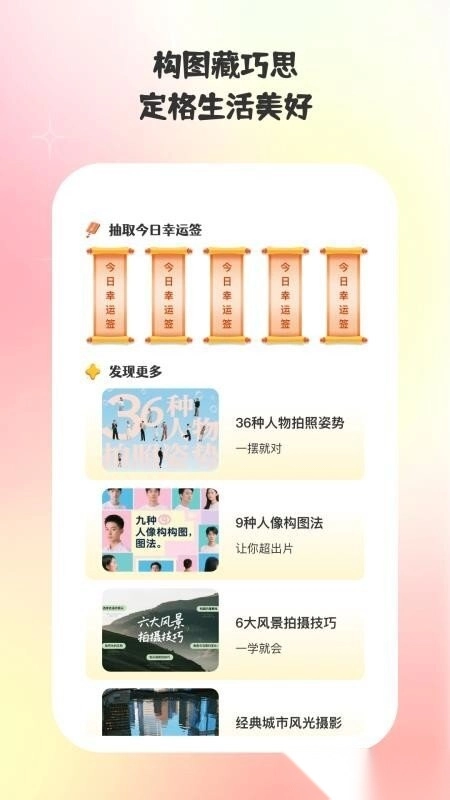 2. 跟随拍照技巧教程,无论是人物拍照姿势,还是风景拍摄技巧,新手都能实现从小白到大神的华丽蜕变。