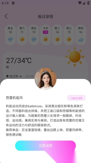2.涵盖当下最流行的服装、发型以及妆容搭配组合,能便捷地进行切换,查看不同搭配呈现出的效果。