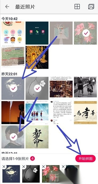 3. 于相册里挑选出打算用来拼图的图片,接着点击“下一步”。