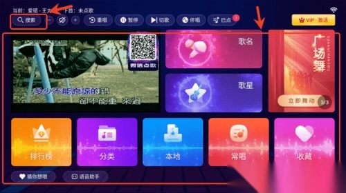 1进入软件后,你可以通过左上角的搜索功能,或者在主页面的推荐专区,来找到自己想要唱的歌曲。